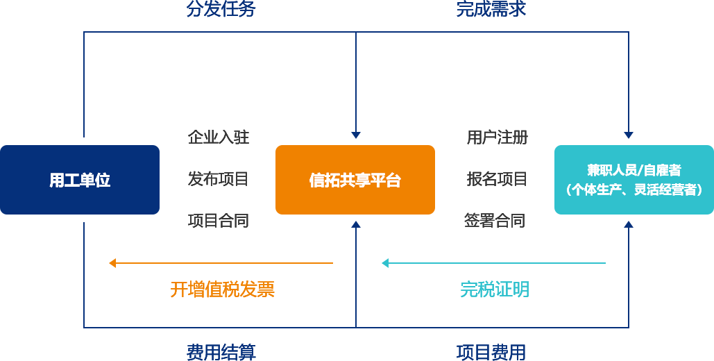 提供共享用工,众包,资金结算,税务代征等全流程等合规服务。