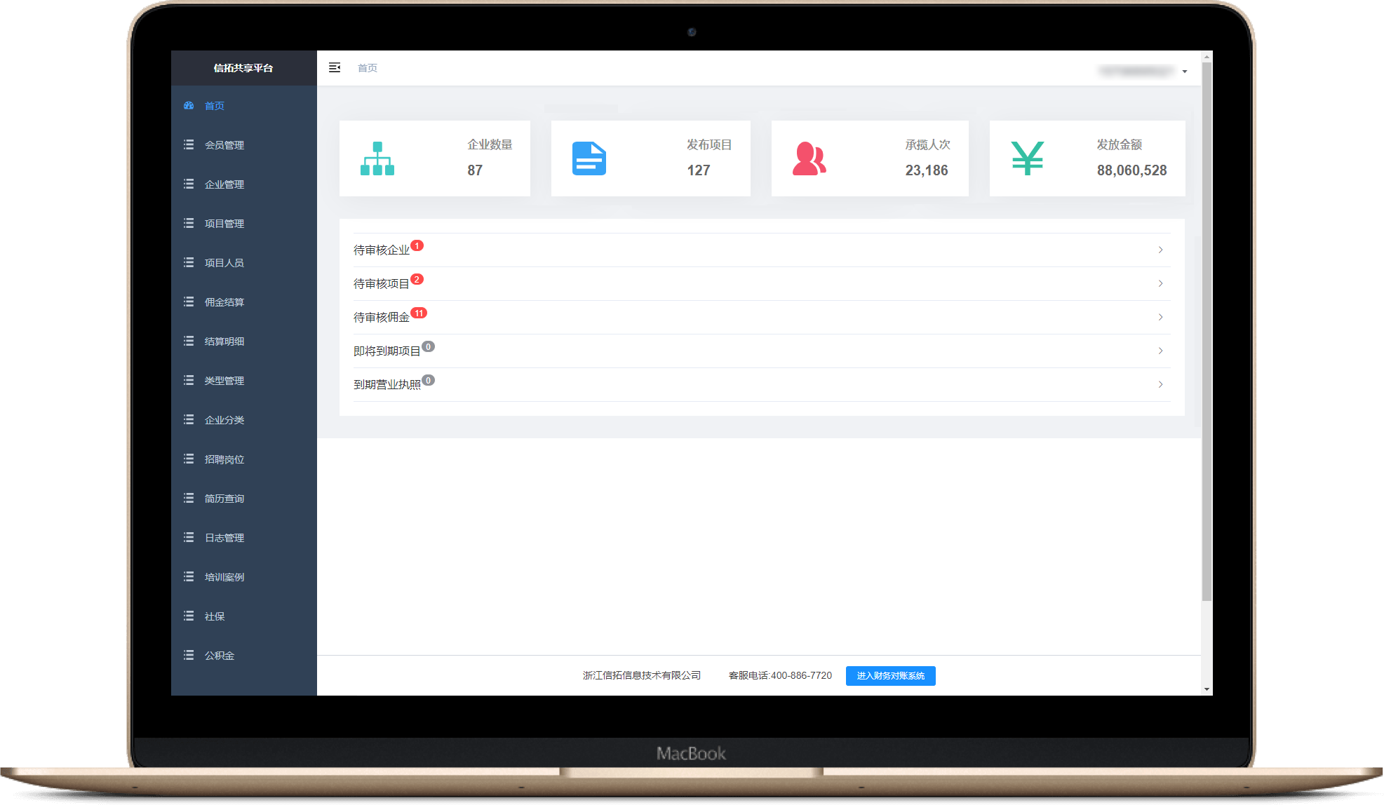 提供企业级免费SaaS服务结算系统,实现B端任务发布,在线签约,资金结算,灵工管理等职能服务。